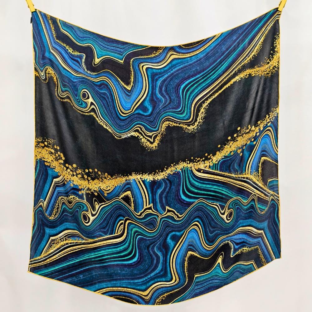Najniższa cena w ciągu ostatnich 30 dni: 269.00 złChusta „Midnight Agate” zachwyca spektakularnym, artystycznym wzorem inspirowanym przekrojem minerału. Głębokie odcienie granatu, turkusu i czerni przecinają się ze złotymi liniami przypominającymi naturalne żyły kamienia. To projekt pełen energii, luksusu i nowoczesnej elegancji.